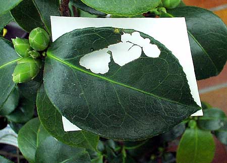Dickmaulrüßler, Monster![]() Einen anderen ungebetenen Gast können Sie an seinen Fraßspuren erkennen: den gefurchten Dickmaulrüßler. Eine genaue Beschreibung mit seltenen Bildern finden Sie (auf englisch) auf der ICS-Seite im Internet: camellia-ics.org unter topics etc..